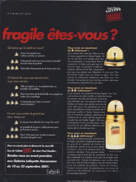 Double publicité recto-verso Jean-Paul Gaultier – Fragile