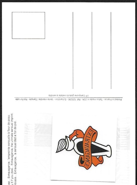 Carte type postale Extravagance avec Tatoo au verso (recto-verso)