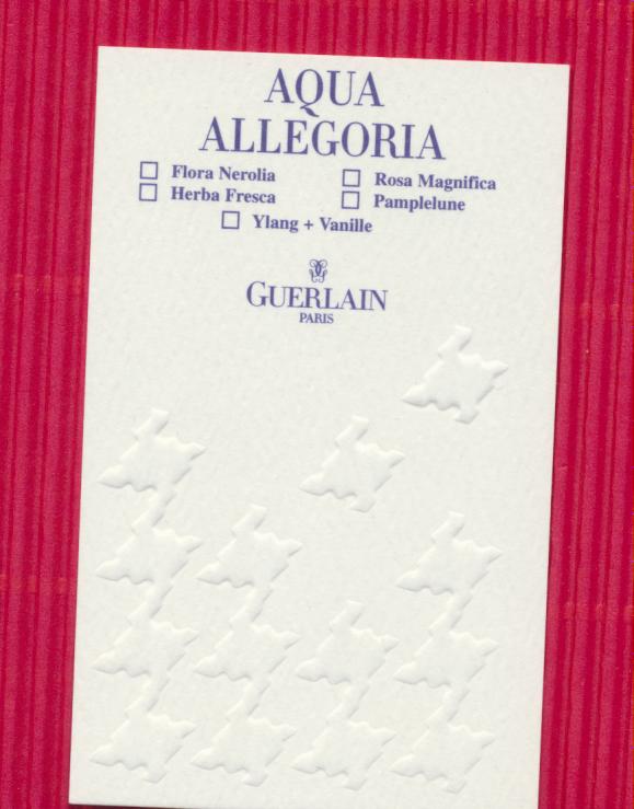 Étiquettes :Aqua-allégoria, Guerlain Publié dans Cartes parfumées - Perfume cards | Commentaires fermés sur Carte à sprayer Aqua-allegoria – Espagne