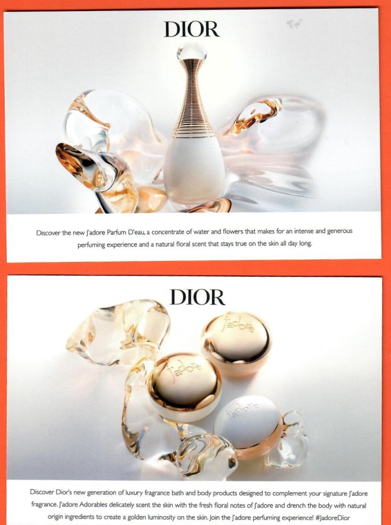 Étiquettes :Dior, J'Adore Publié dans Cartes parfumées - Perfume cards | Commentaires fermés sur Carte type postale J’Adore – UK