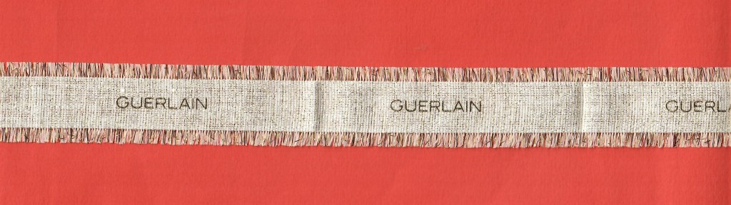 Publié dans Rubans/ Bracelets | Commentaires fermés sur Ruban Guerlain beige avec franges et texte doré (43 cm/2,9 cm)