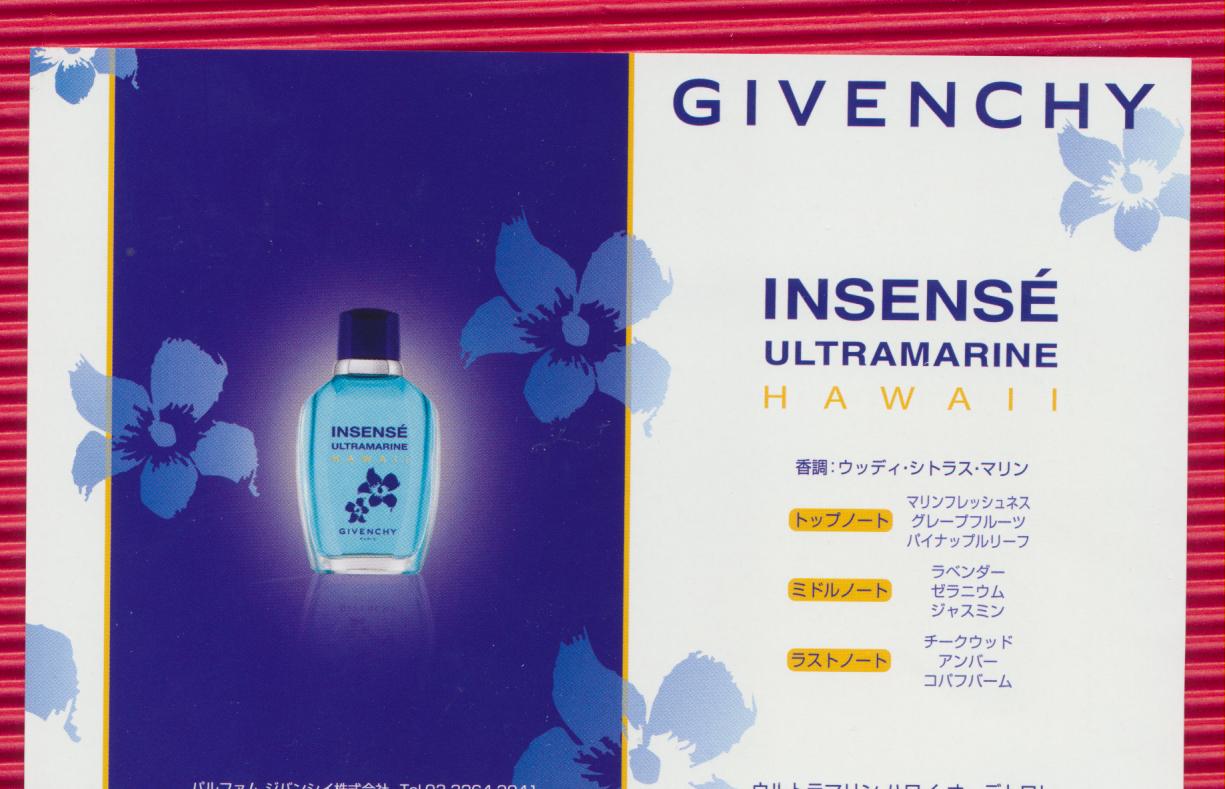 Étiquettes :Givenchy, Insensé Publié dans Cartes parfumées - Perfume cards | Commentaires fermés sur Carte glacée Insensé ultramarine Hawaii – Japon