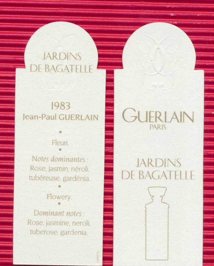 Étiquettes :Aqua-allégoria, Chamade, Champs-Elysées, Guerlain, Jardins de Bagatelle, Jicky, L'H'eure Bleue, Mitsouko, Nahema, Samsara, Shalimar, Too Much, Vol de Nuit
