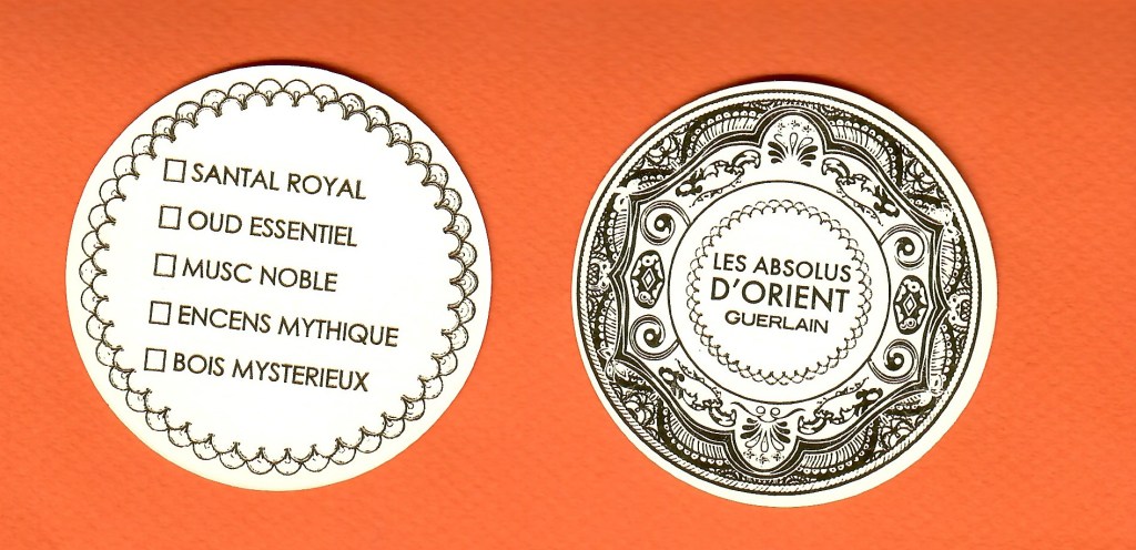 Publié dans Cartes parfumées - Perfume cards | Commentaires fermés sur Carte à sprayer Les Absolus d’Orient (recto-verso)