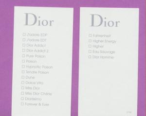 Étiquettes :Dior, Dior Addict, Dior Homme, Diorissimo, Dolce Vita, Eau Sauvage, Fahrenheit, Forever 1 Ever, Higher, Hypnotic Poison, J'Adore, Miss Dior, Miss Dior Chérie, Poison, Pure Poison, Tendre Poison