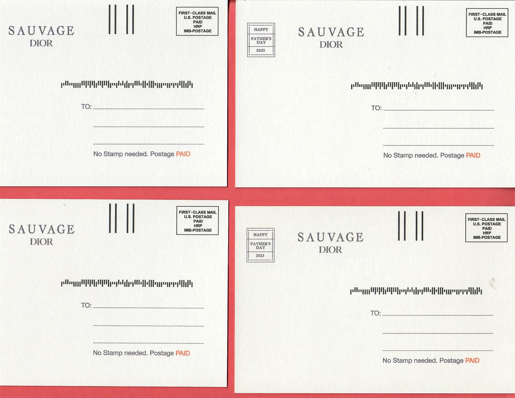 Étiquettes :Dior, Sauvage Publié dans Cartes parfumées - Perfume cards | Commentaires fermés sur Lot de 4 cartes type postale Sauvage pour Father’s day 2023 (recto-verso) – USA