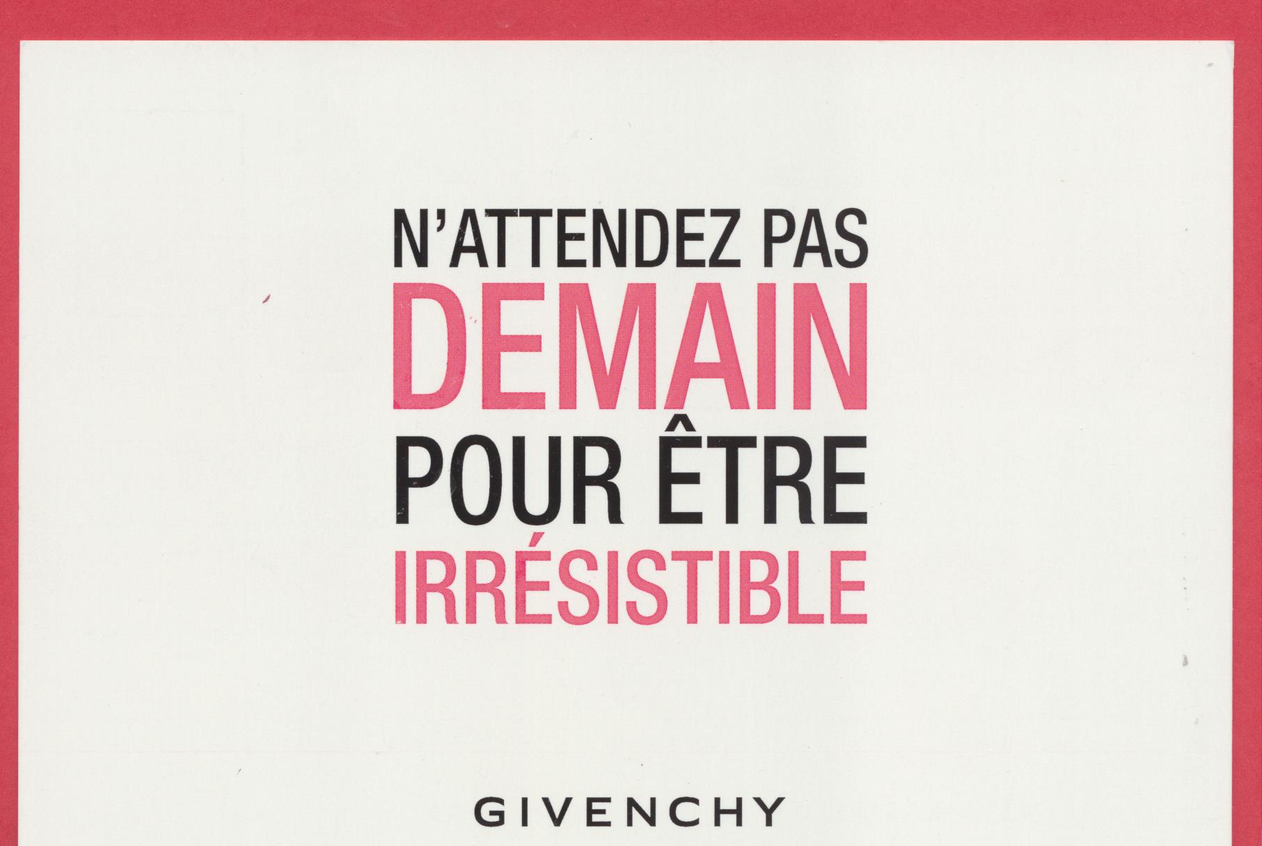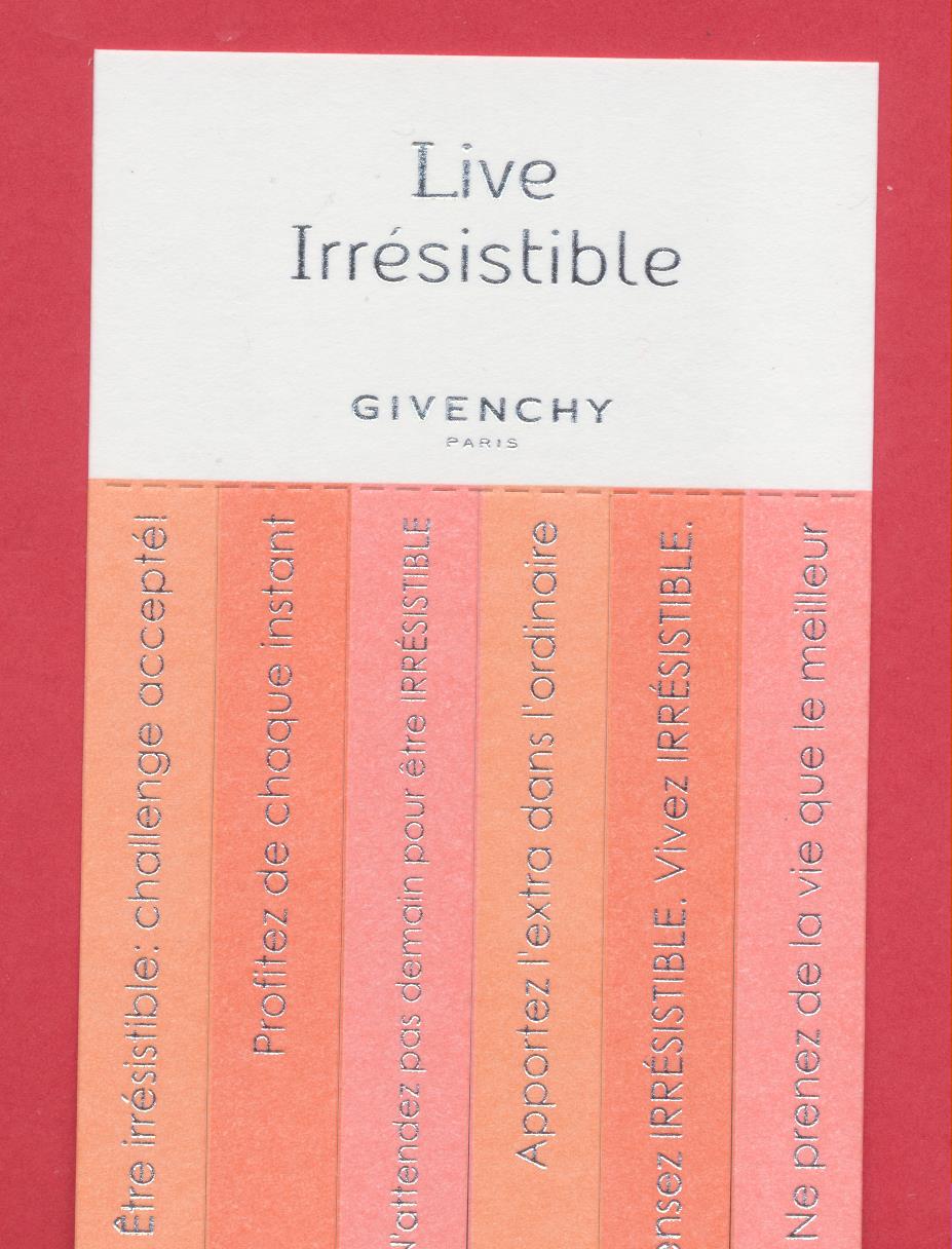 Étiquettes :Givenchy, Very Irrésistible Publié dans Cartes parfumées - Perfume cards | Commentaires fermés sur Carte-bandelette – Live Irresistible – texte en anglais