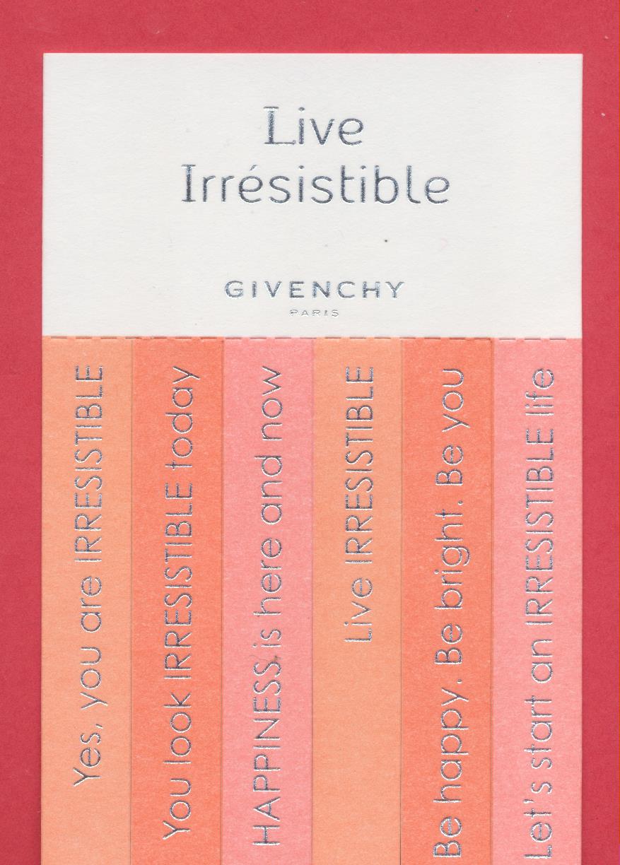 Étiquettes :Givenchy, Very Irrésistible Publié dans Cartes parfumées - Perfume cards | Commentaires fermés sur Carte-bandelette Live Irrésistible – texte français
